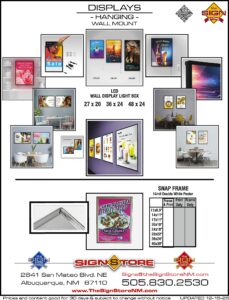 Quickly update your signs and posters with wall-mounted frames.