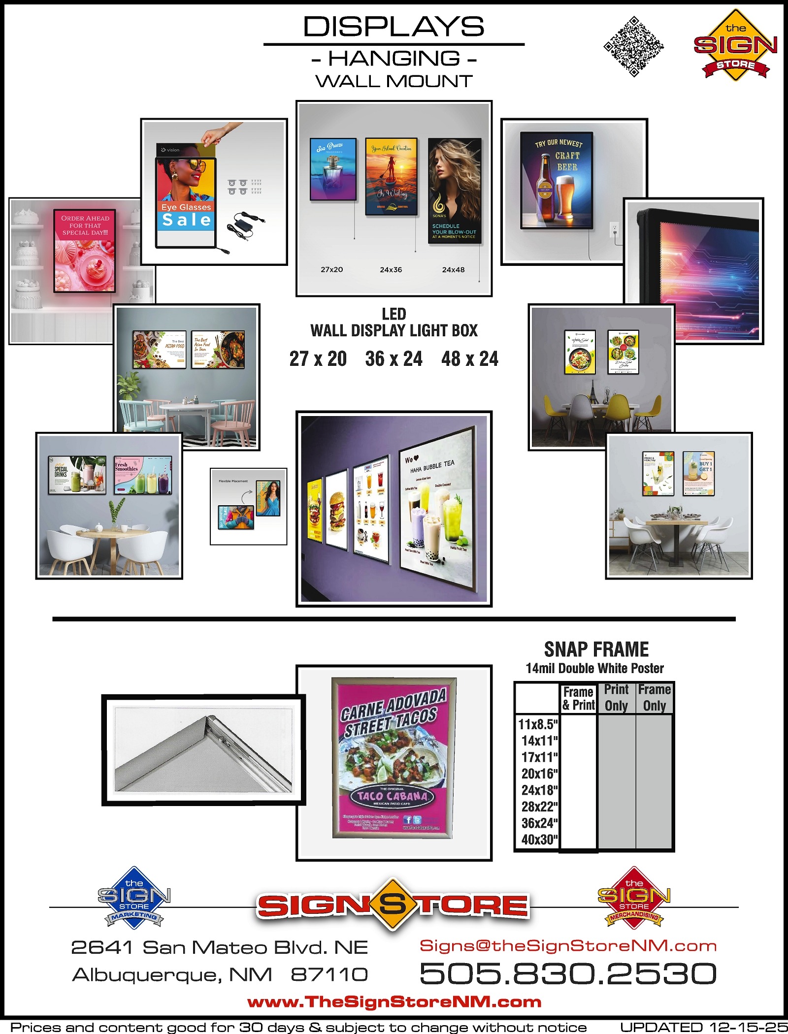 Note: LED frame displays are available in three sizes, 20”x27”, 24”x36”, and 24”x48”.