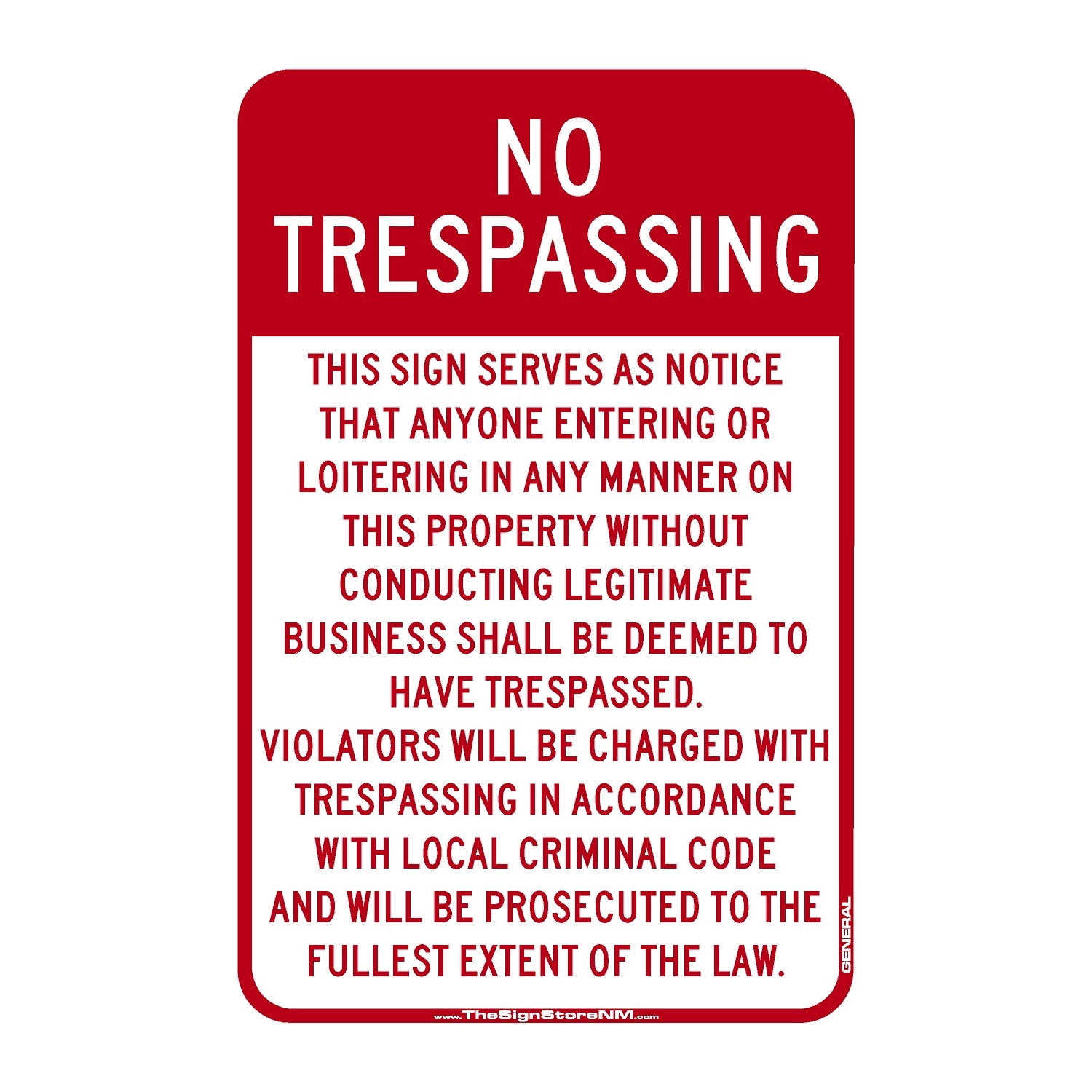 No Trespassing Sign | Violators Will Be Prosecuted | General Law