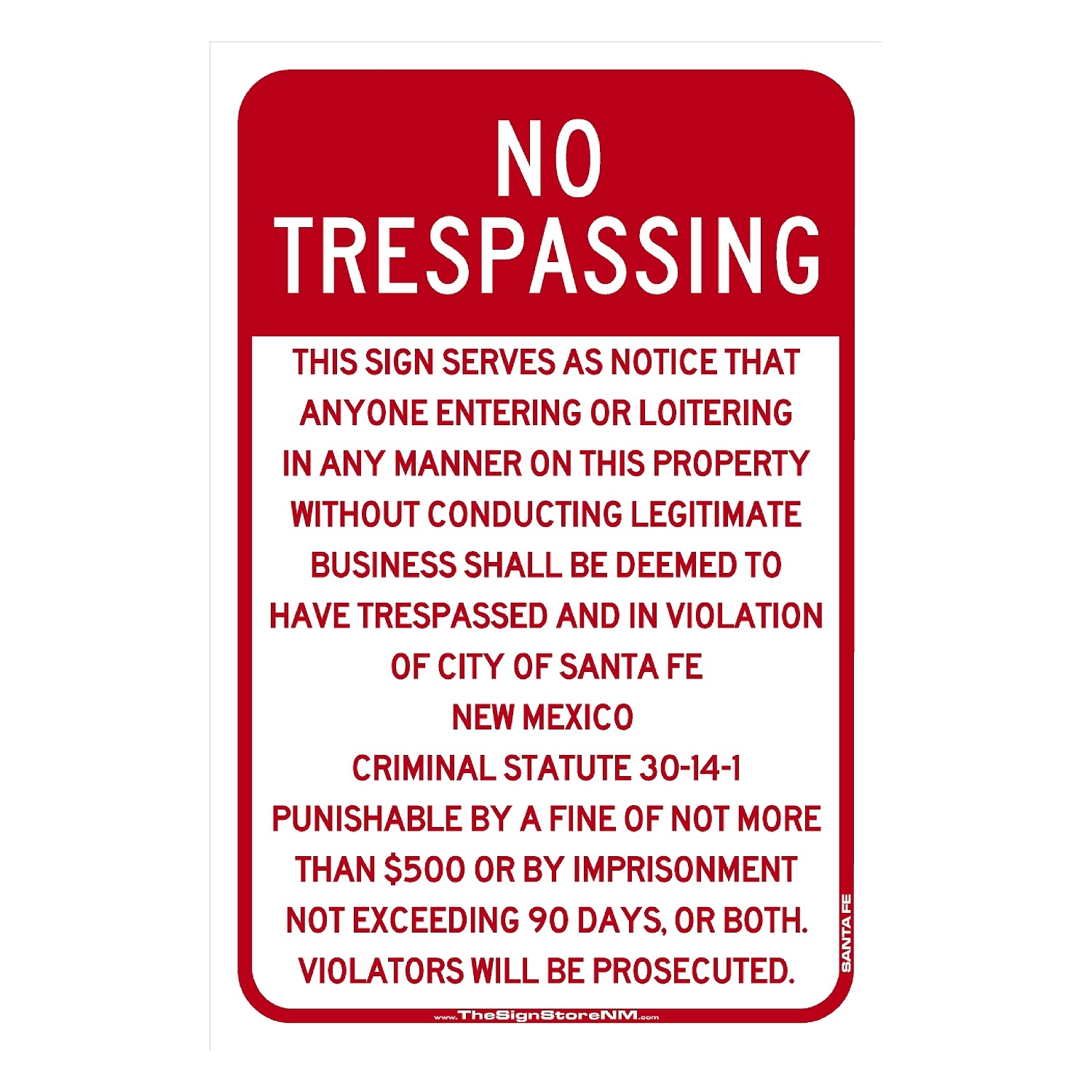No Trespassing | Violators Will Be Prosecuted | Santa Fe City Code